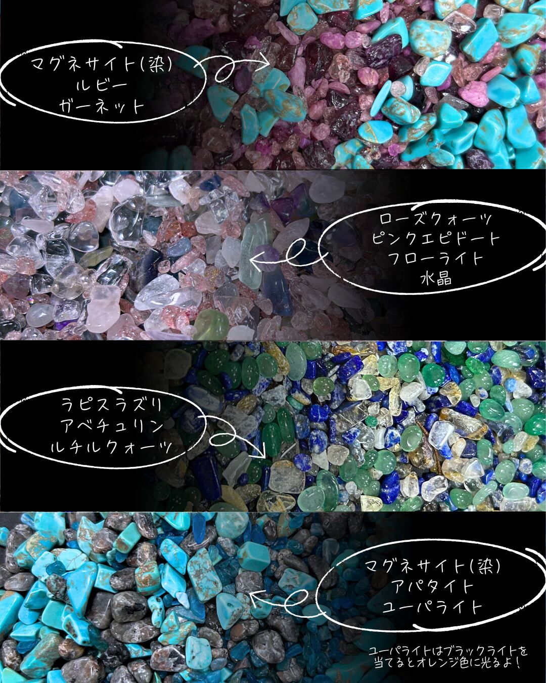 中には数種類の天然石が一緒に入っています。(全4種類ランダム)