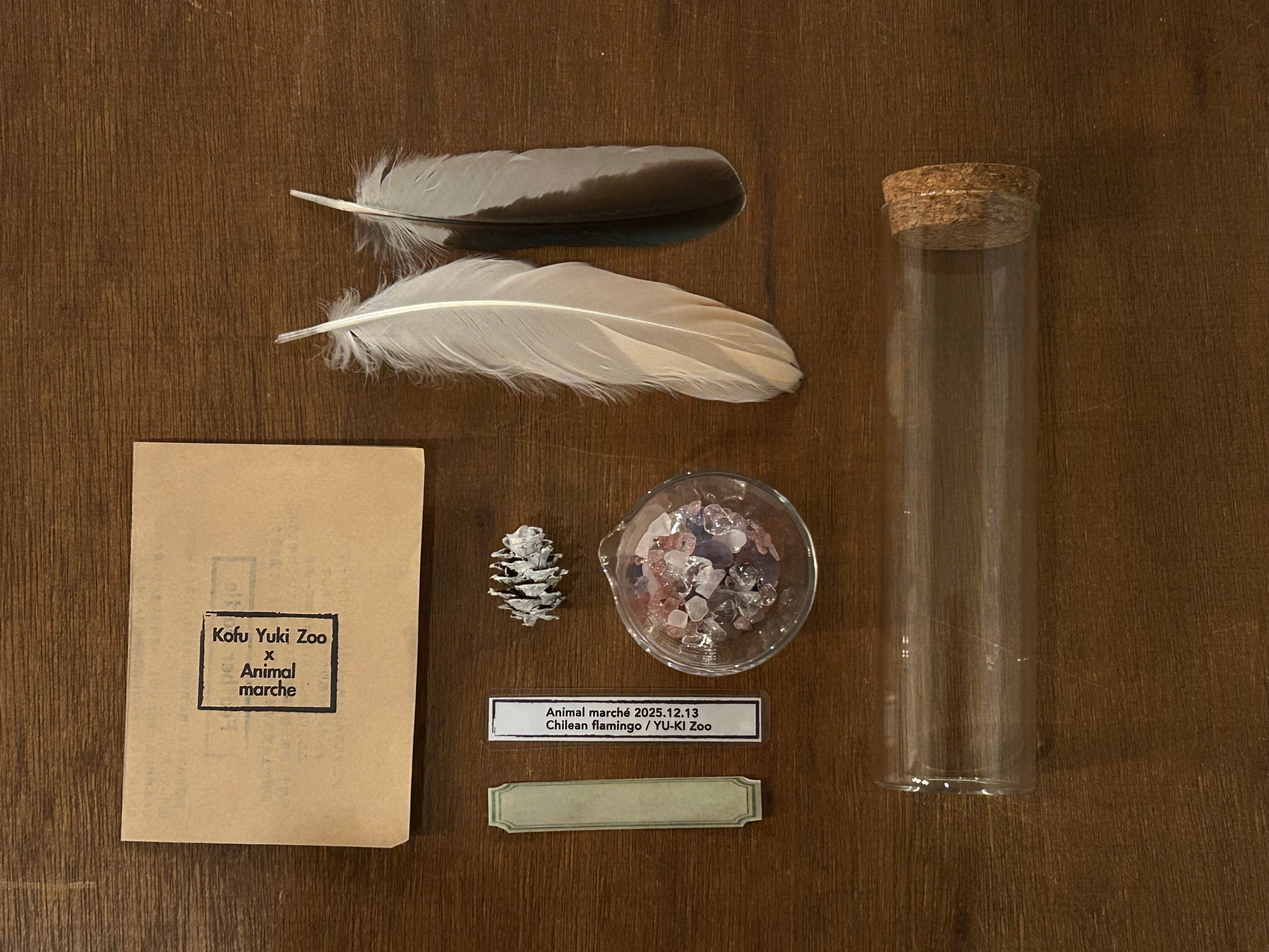 羽根と一緒にお家にある思い入れのあるものを入れて、動物園の動物たちを思い出したりしながら、インテリアとして飾ってもらえるとうれしいです♡